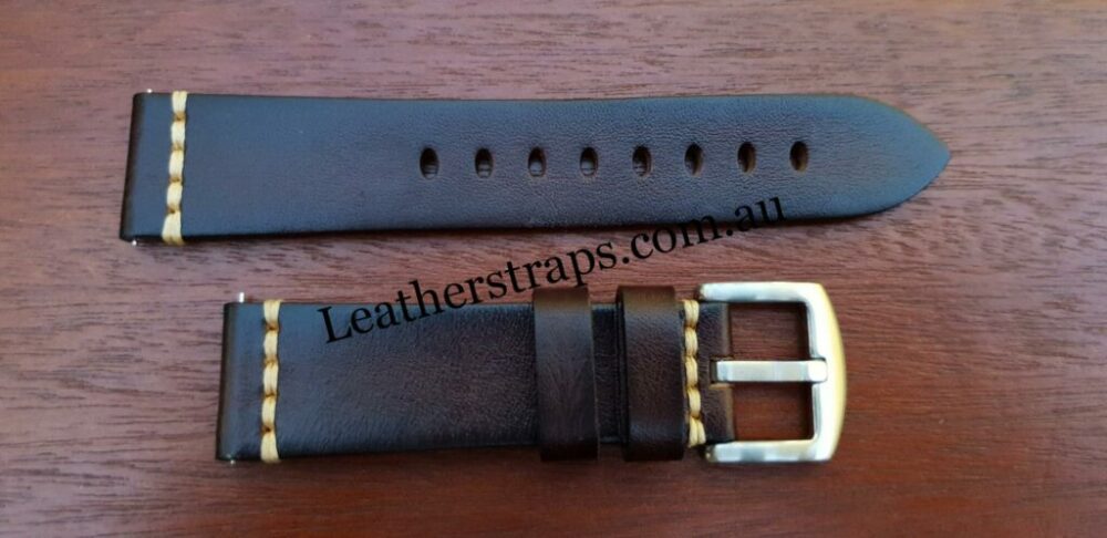 Waxed and double stitched, quick release spring bars. 316L stainless steel lightly brushed buckle completes the design perfectly.