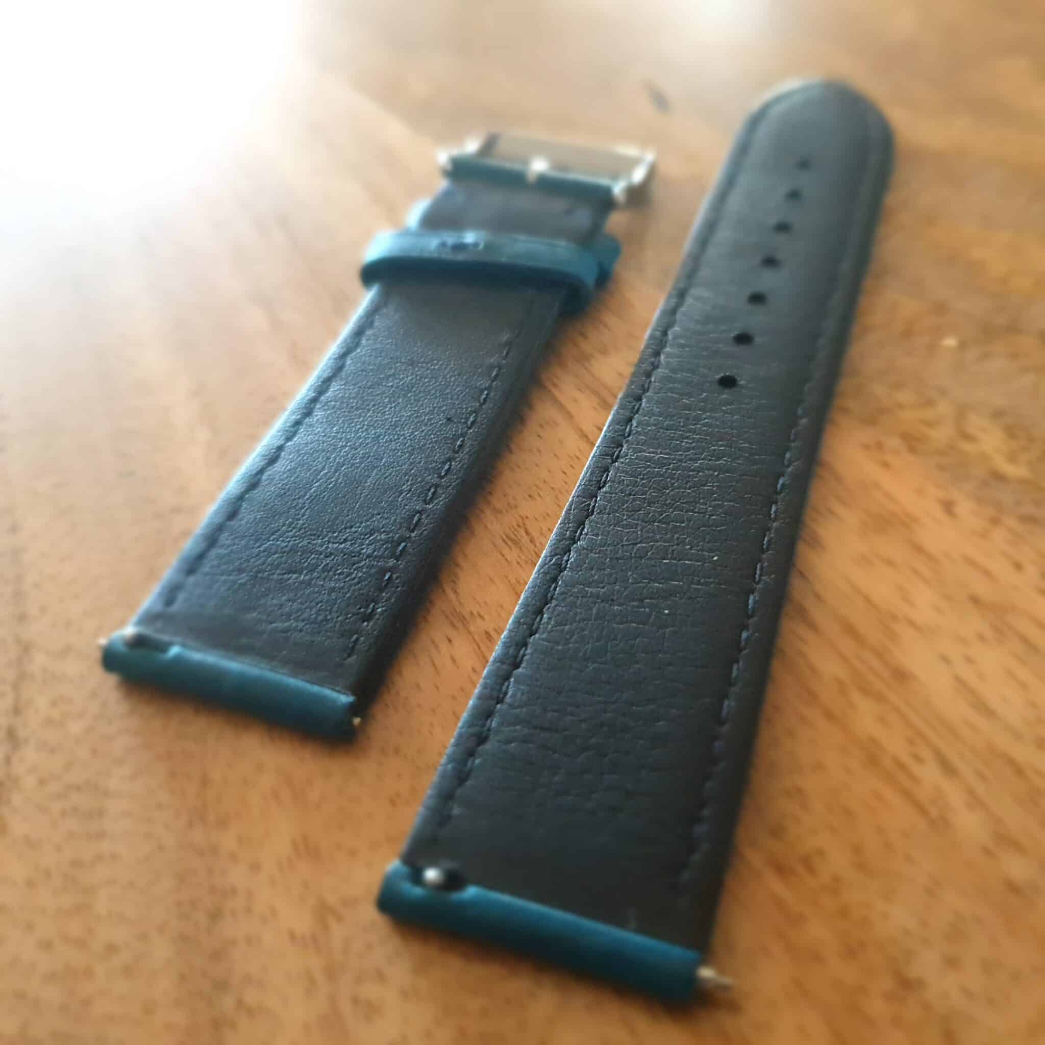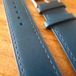 Note from Rob – shop manager – I’ve been wearing the Blue Pialba on one of my everyday watches for the last few months (see pics) and absolutely love it. My favourite strap right now. Will release the blue in April and i have a brown on the way. Develops a vintage style patina after wearing for a month or so. ‘Wear and tear’ at buckle is less than normal for a strap although as always, i recommend a clasp with a leather watch band. Pics of watch is after me wearing and abusing for testing purposes pre-release.